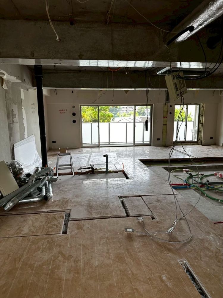 既存の床を残す場合、床にわずかな凹凸が現れるリスクはあります。しかし全面更新に比べて工事コストや工期を抑えられるため、今回の計画では仕上げや上貼りによって調整しながら活用しています。