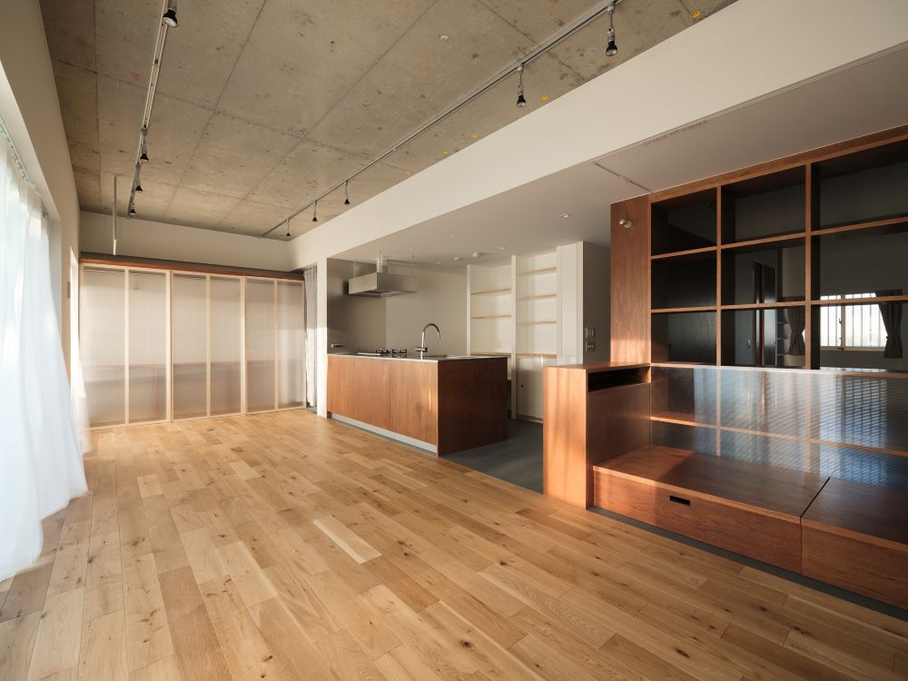 既存の床を活かしたこの物件は、住戸平面を大きく再構成しています。