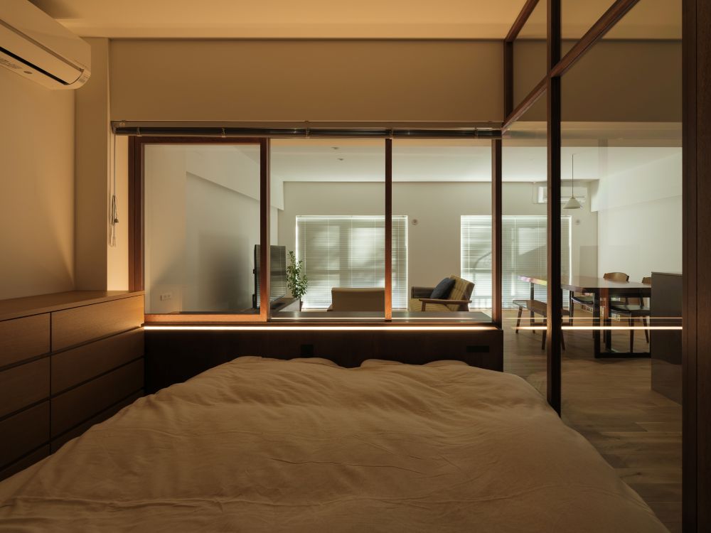 LDKと寝室の間にはガラスの間仕切りを設けています。