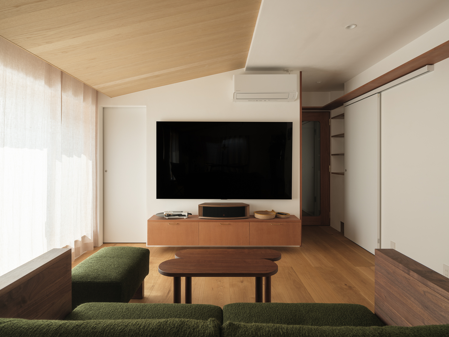お二人のライフスタイルに欠かせない防音性を保ちながら、小さな家族が自由に過ごせる工夫が随所に施されています。