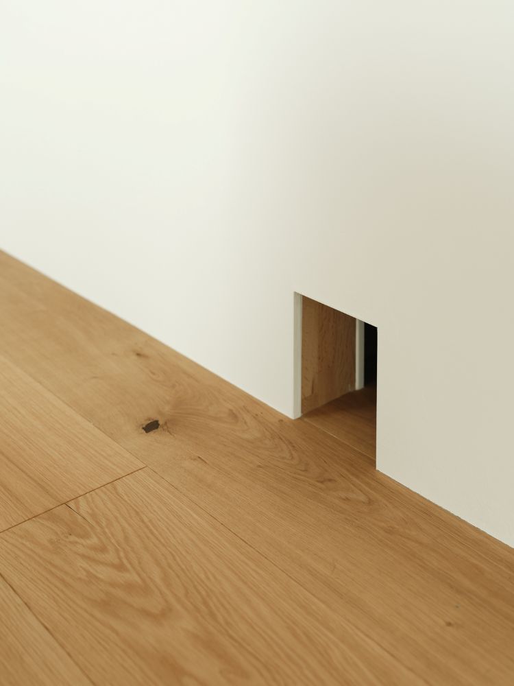 防音室には猫専用のトンネルを設置。音漏れを防ぐために真鍮製のふたを特別に設けるなど、人と猫の両方の快適さを大切にしています。